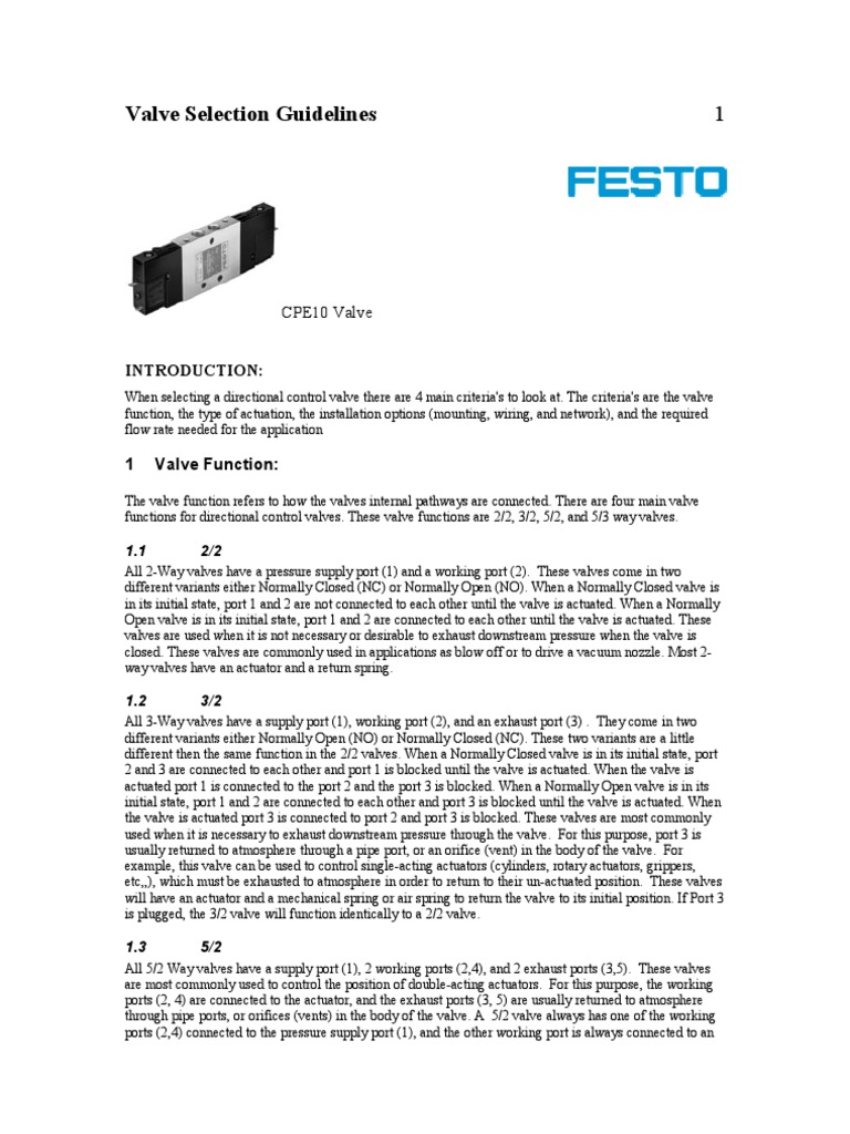 Valve Selection Guidelines Valve Actuator